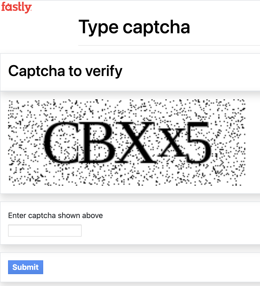 Present the user with a CAPTCHA challenge to verify that they are not a bot, generated, served and verified at the edge.