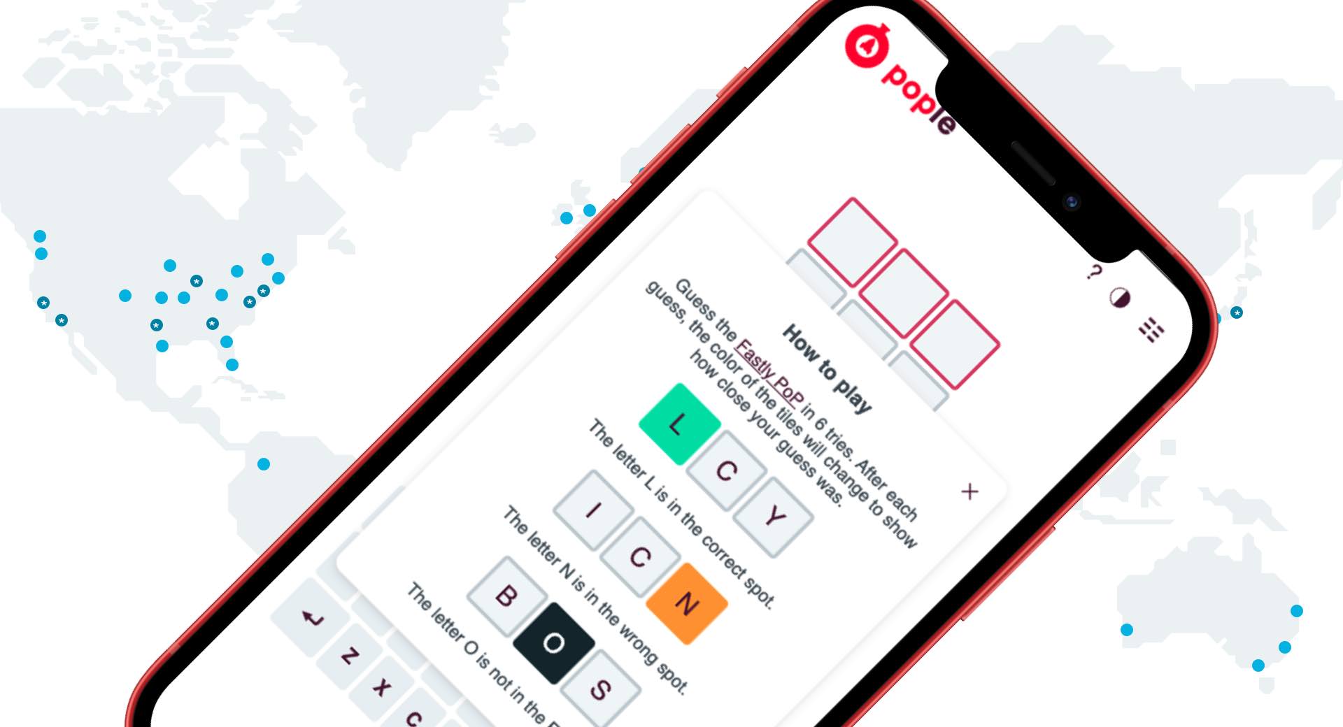 Pople is take on the popular word game, Wordle, where players are challenged to guess different Fastly POPs each day.